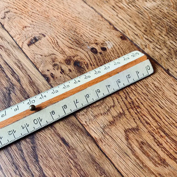 Vecchio righello vintage in legno con elemento in ottone - Italia 1970