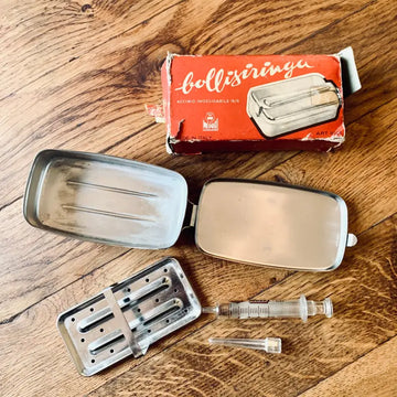 Bollisiringa vintage Mepra Bollitore per Siringa completo in Acciaio Inox - Italia 1970