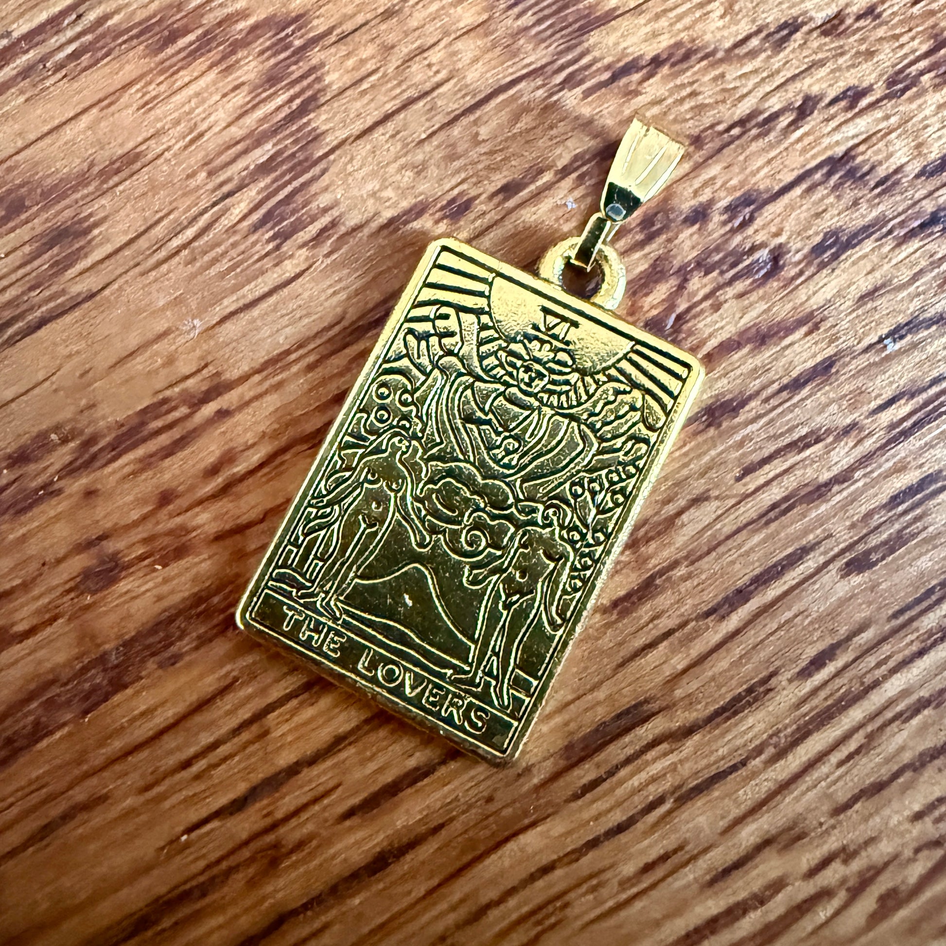 Gli Amanti tarocchi ciondolo vintage in metallo oro - Spagna 2000